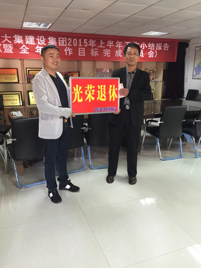 2015年11月2日上午,艷陽高照,湖北大集建設(shè)集團有限公司向退休職工何維祥同志送去關(guān)愛,在歡送儀式上,集團董事長徐濤同志親自為退休職工頒發(fā)了紀念獎牌和萬元慰問金,并送上了衷心的祝福,徐董說:“感謝老員工多年來為公司做出的貢獻,公司發(fā)展從小到大離不開老職工們打下的堅實基礎(chǔ),公司永遠不會忘記他們?yōu)楣镜钠D辛付出和貢獻。公司將繼承和發(fā)揚他們艱苦創(chuàng)業(yè)、無私奉獻的優(yōu)良傳統(tǒng),努力工作,不斷推動企業(yè)健康、穩(wěn)步向前發(fā)展”。同時徐董還說:“一個企業(yè)不僅要靠豐厚的待遇來激勵員工,更要靠濃厚的企業(yè)文化來凝聚員工,老職工退休舉行“退休”儀式,可以讓年輕員工感受到,只要我們努力學(xué)習(xí),愛崗敬業(yè)、為企業(yè)作出貢獻,企業(yè)就永遠不會忘記他們”。