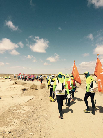 5月22日戈壁挑戰(zhàn)賽開賽首日,來自49所院校商學(xué)院的2000多名戈友再一次齊聚在阿育王寺,在塵沙和烈風(fēng)中鳴槍起跑。不遠處,阿育王塔依然矗立。于是,千年的滄桑和青春的激揚,就這樣融合進了那黃土漫漫、蕩氣回腸的茫茫弋壁中。在這群隊伍中,有一群來自大集的勇士,始終最積極、最燦爛、最耀眼的姿態(tài)將自己展現(xiàn)在不見邊際的天地盡頭,這便是由公司董事長帶領(lǐng),對戈壁之行充滿著無限的幻想和探索的大集人。