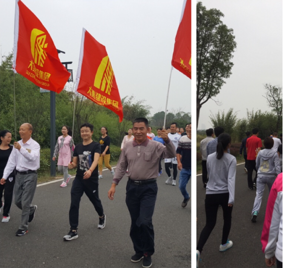 “1234,1234,大集,大集,齊心協(xié)力,奮勇向前,只爭朝夕……”整齊劃一的吶喊聲和腳步聲迎面而來,鮮艷奪目的企業(yè)司旗,年輕似火的團隊成員一一盡現眼簾,大家表現得十分活躍,動作協(xié)調,緊密配合,處處可以感受到團隊合作的力量。在這里,在此時,正在如火如荼的上演一場熱身賽。這里是后官湖濕地公園的跑道上,也是湖北大集建設集團為參加本月底半馬比賽而組織的集結地。