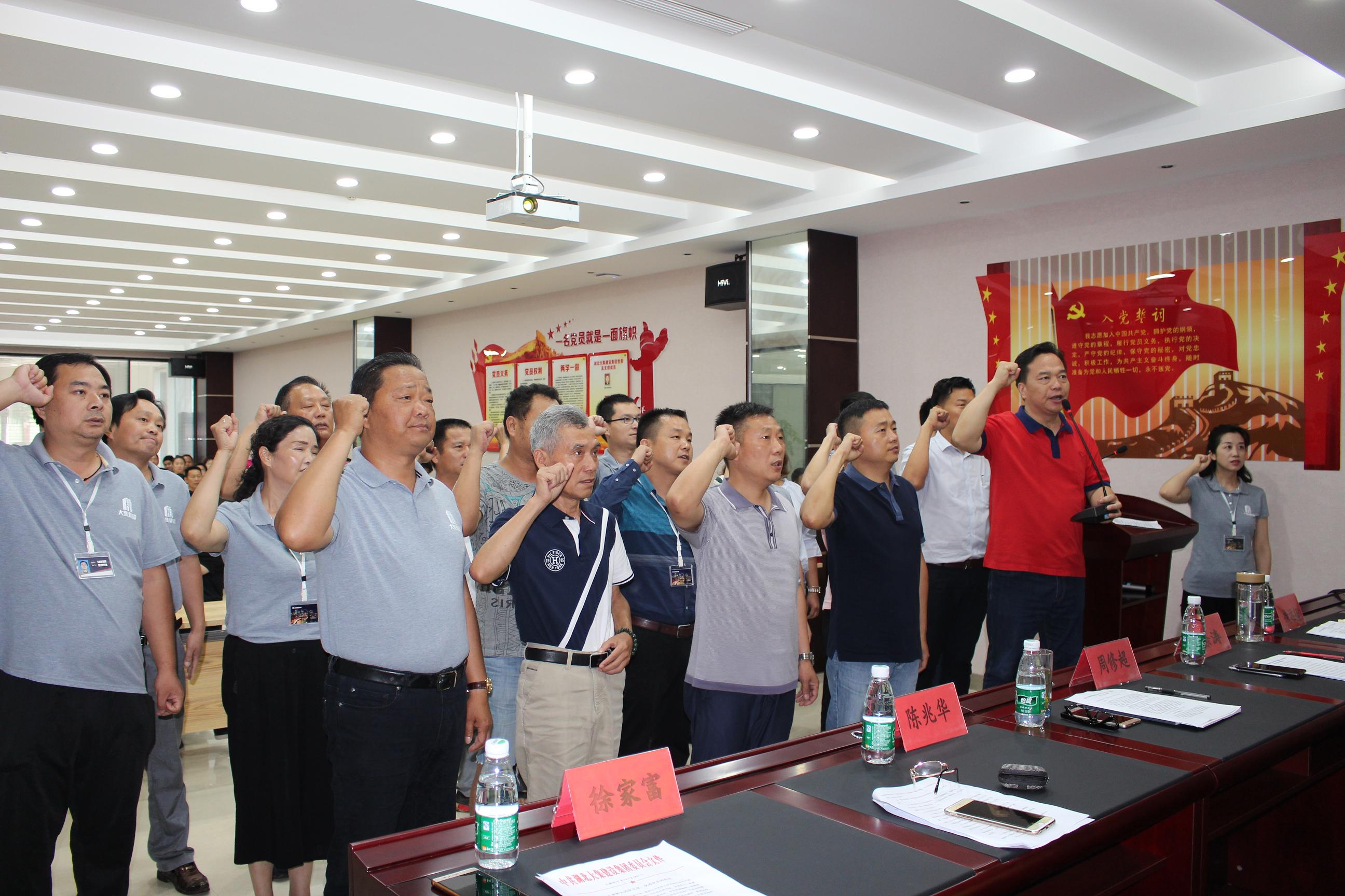 在慷慨激昂的大合唱《沒有共產(chǎn)黨就沒有新中國》中,會議拉開了序幕,熱血沸騰的歌聲結(jié)束后,由集團黨委副書記徐遠征同志帶領(lǐng)新黨員做入黨宣誓,老黨員重溫入黨誓詞。