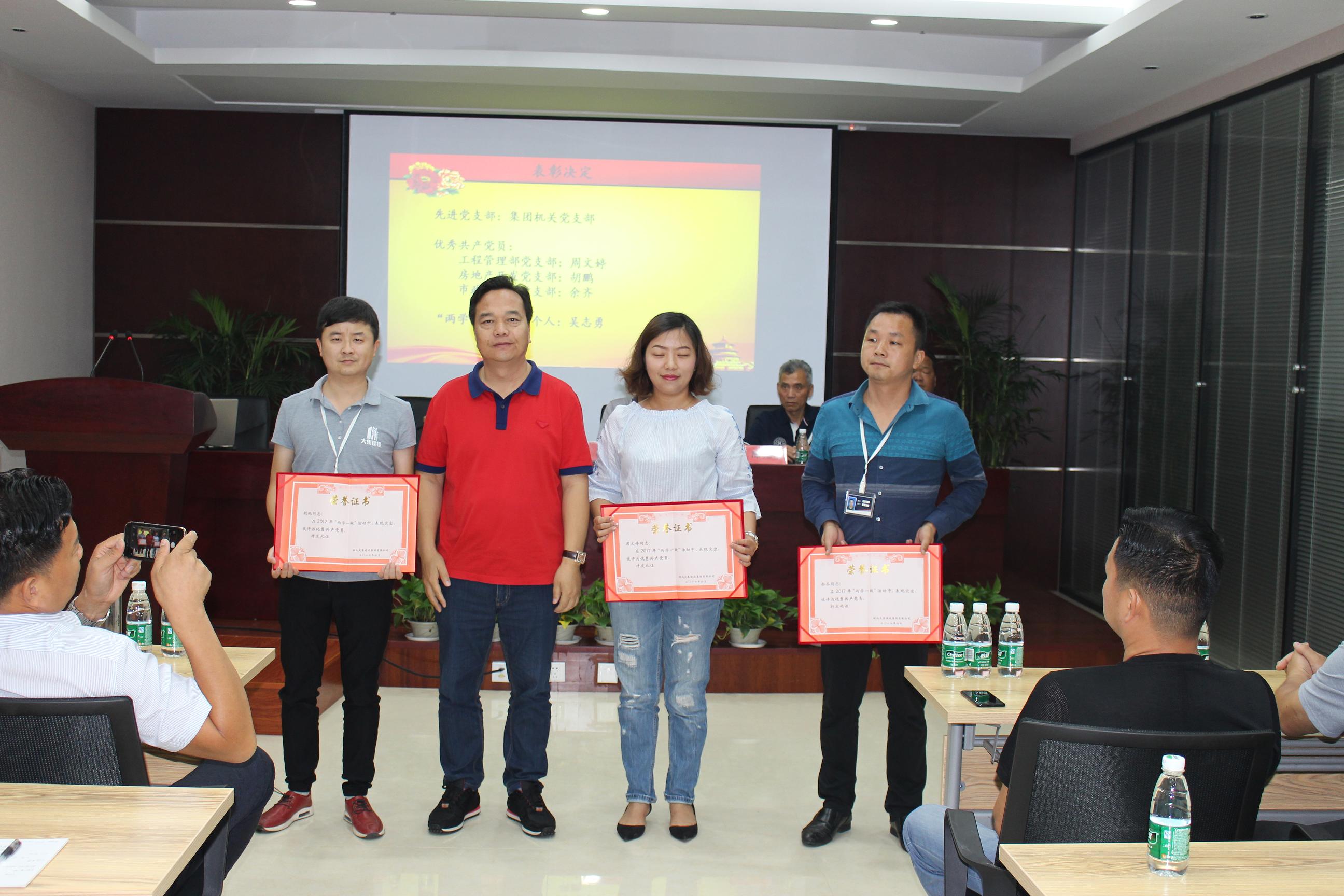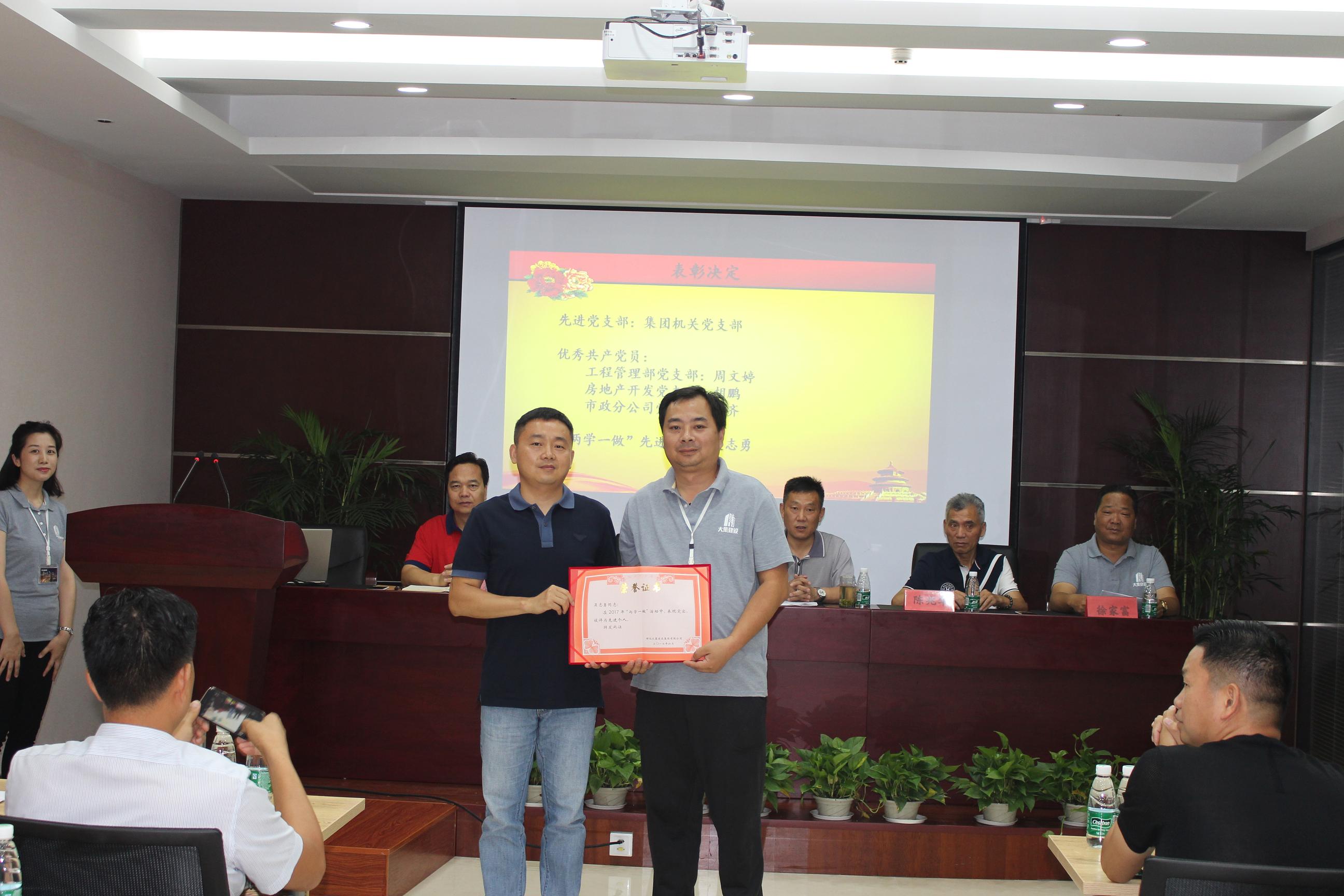 接著,由工程管理部黨支部書記徐家富同志宣讀中共湖北大集建設(shè)集團有限公司黨委《關(guān)于集團公司黨委和支部人員組成的決定》及《關(guān)于表彰先進黨支部、優(yōu)秀黨員的決定》。