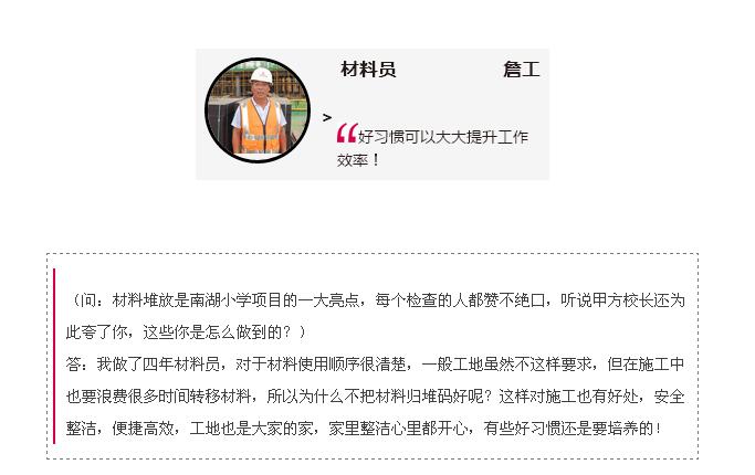 南湖小學(xué)項(xiàng)目是事關(guān)教育百年大計(jì)的重要民生工程,開工以來不僅受到各級(jí)政府領(lǐng)導(dǎo)的熱切關(guān)注,也受到集團(tuán)領(lǐng)導(dǎo)的高度重視,自承接項(xiàng)目伊始,項(xiàng)目經(jīng)理徐家富就承諾:一定要把南湖小學(xué)項(xiàng)目做成集團(tuán)的樣本工程,創(chuàng)杯工程,讓社會(huì)和政府滿意的工程!短短三個(gè)月的時(shí)間,南湖小學(xué)項(xiàng)目就取得了不少成就,不僅受到政府各級(jí)領(lǐng)導(dǎo)的表揚(yáng),也榮獲了集團(tuán)各職能部門的一致好評(píng),更讓他的承諾成功轉(zhuǎn)化為現(xiàn)實(shí)!