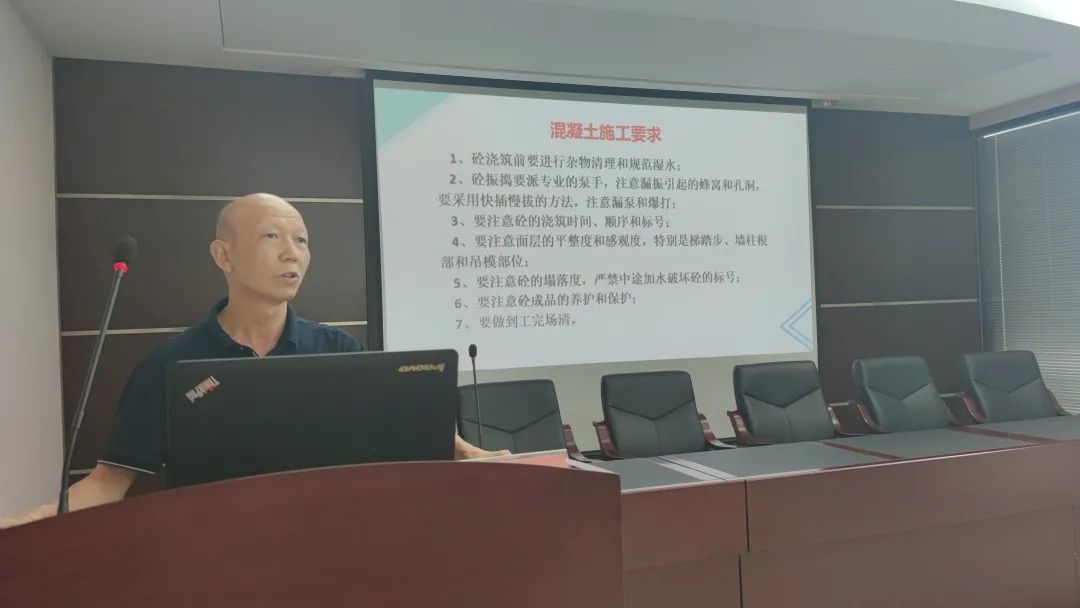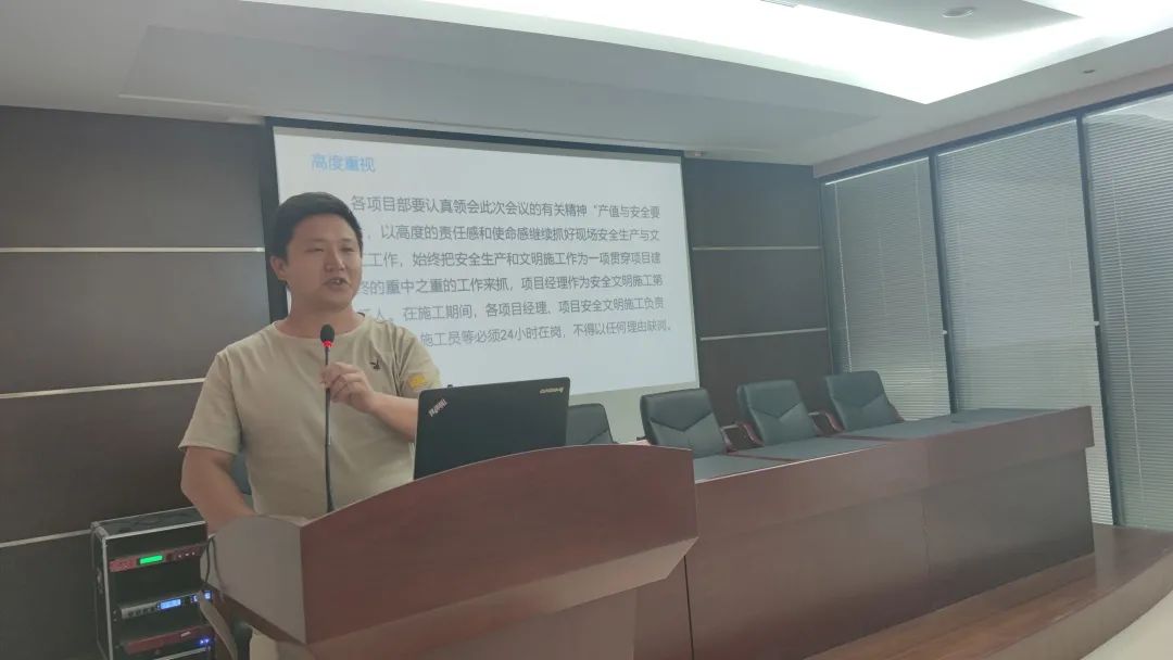 緊接著,工程部安全主管秦春波表明安全生產(chǎn)的重要性并進(jìn)行了詳細(xì)說明,提出了安全第一、強(qiáng)化意識(shí)、教育培訓(xùn)、預(yù)防為主、防治結(jié)合的安全施工理念,著重講述細(xì)微的安全隱患,讓各位項(xiàng)目工作人員引起重視。