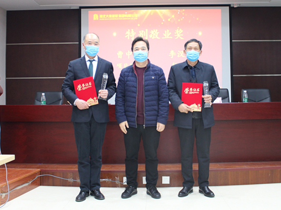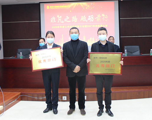 1月20日下午,集團(tuán)公司隆重召開2020年年度工作總結(jié)表彰大會暨2021年迎新春大會。按照疫情防控工作相關(guān)要求,大會嚴(yán)格做好各項防控工作,控制會場人數(shù),采取“線上+線下”的形式召開,集團(tuán)領(lǐng)導(dǎo)、全體員工、各項目經(jīng)理,以及受表彰個人和團(tuán)隊代表在現(xiàn)場參會,其他員工通過微信群直播的形式參會。大會全面總結(jié)了過去一年的各項工作,對一年來在公司生產(chǎn)經(jīng)營管理各項工作中做出突出貢獻(xiàn)的先進(jìn)集體和先進(jìn)個人進(jìn)行了表彰,安排部署了2021年集團(tuán)公司的各項工作。