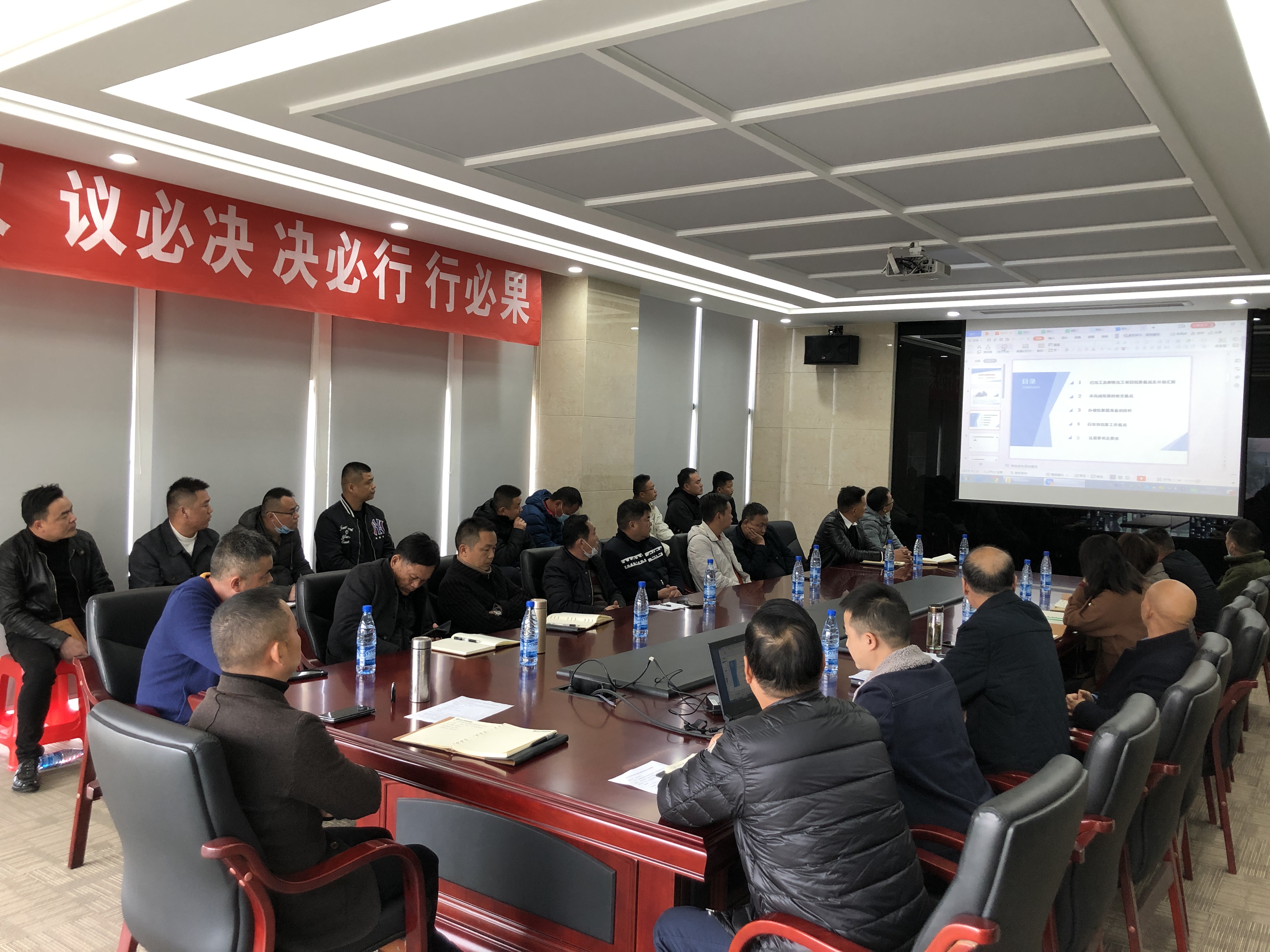 為加快推進(jìn)項(xiàng)目結(jié)算及資金回收進(jìn)度,切實(shí)做好春節(jié)前項(xiàng)目維穩(wěn)工作,保證安全生產(chǎn)平穩(wěn)開展,11月22日下午,集團(tuán)公司特別召開了春節(jié)前項(xiàng)目結(jié)算及維穩(wěn)工作專題工作會(huì)議,集團(tuán)公司董事長(zhǎng)徐濤、副總經(jīng)理徐家富、各部門負(fù)責(zé)人及各項(xiàng)目經(jīng)理出席參加了會(huì)議。