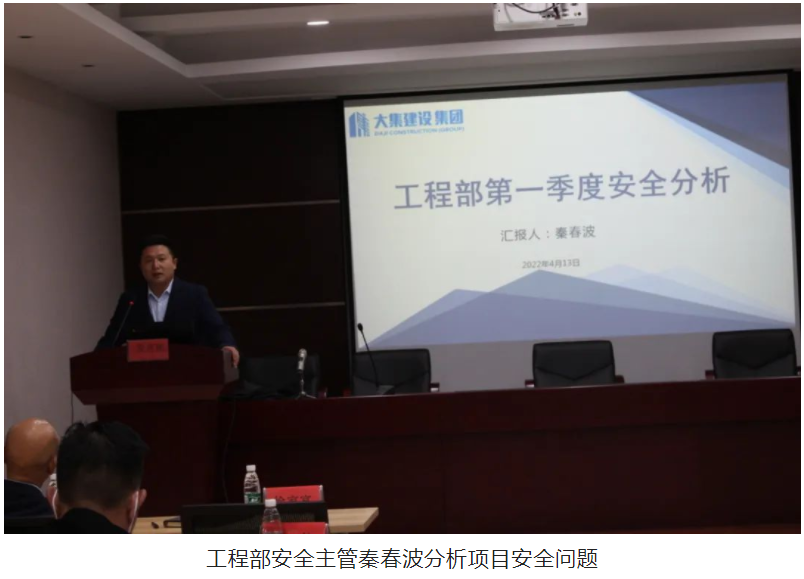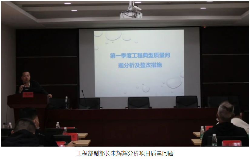隨后,會議進入質(zhì)量、安全隱患分析環(huán)節(jié),工程部副部長朱輝輝及安全主管秦春波采用PPT通報問題的方式,照片配合講述,更直觀的把項目質(zhì)量、安全隱患問題展現(xiàn)在大家面前,朱工和秦工結(jié)合項目現(xiàn)場存在的質(zhì)量、安全問題,著重分析了問題產(chǎn)生的原因以及現(xiàn)場的安全管理情況,并逐一對各項目提出了相應的整改措施。