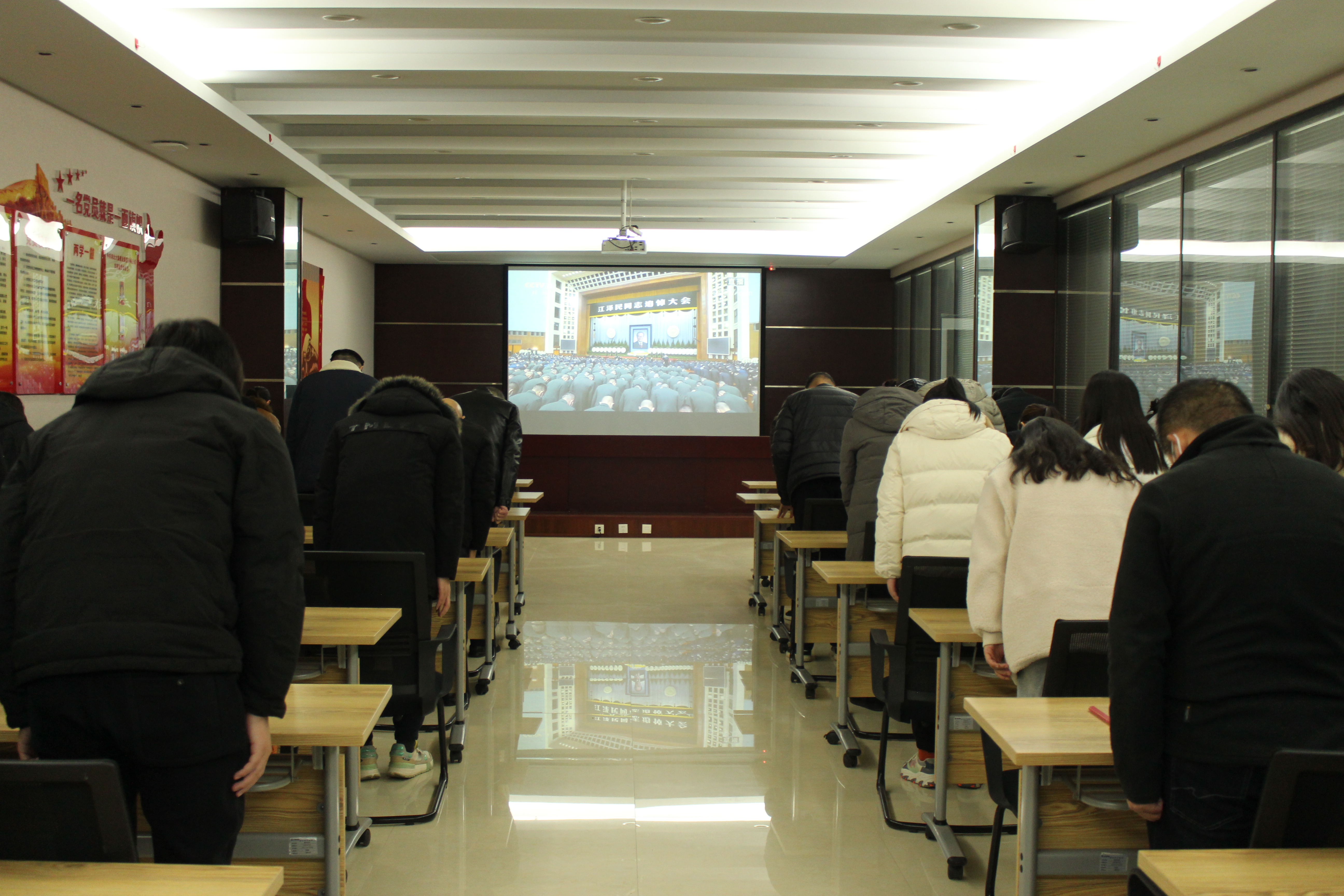 全體員工懷著悲痛的心情,為江澤民同志默哀3分鐘。大家通過直播畫面深切緬懷江澤民同志為黨、為祖國、為人民建立的不朽功勛,追思和學習他為黨和人民事業(yè)不懈奮斗的崇高風范。