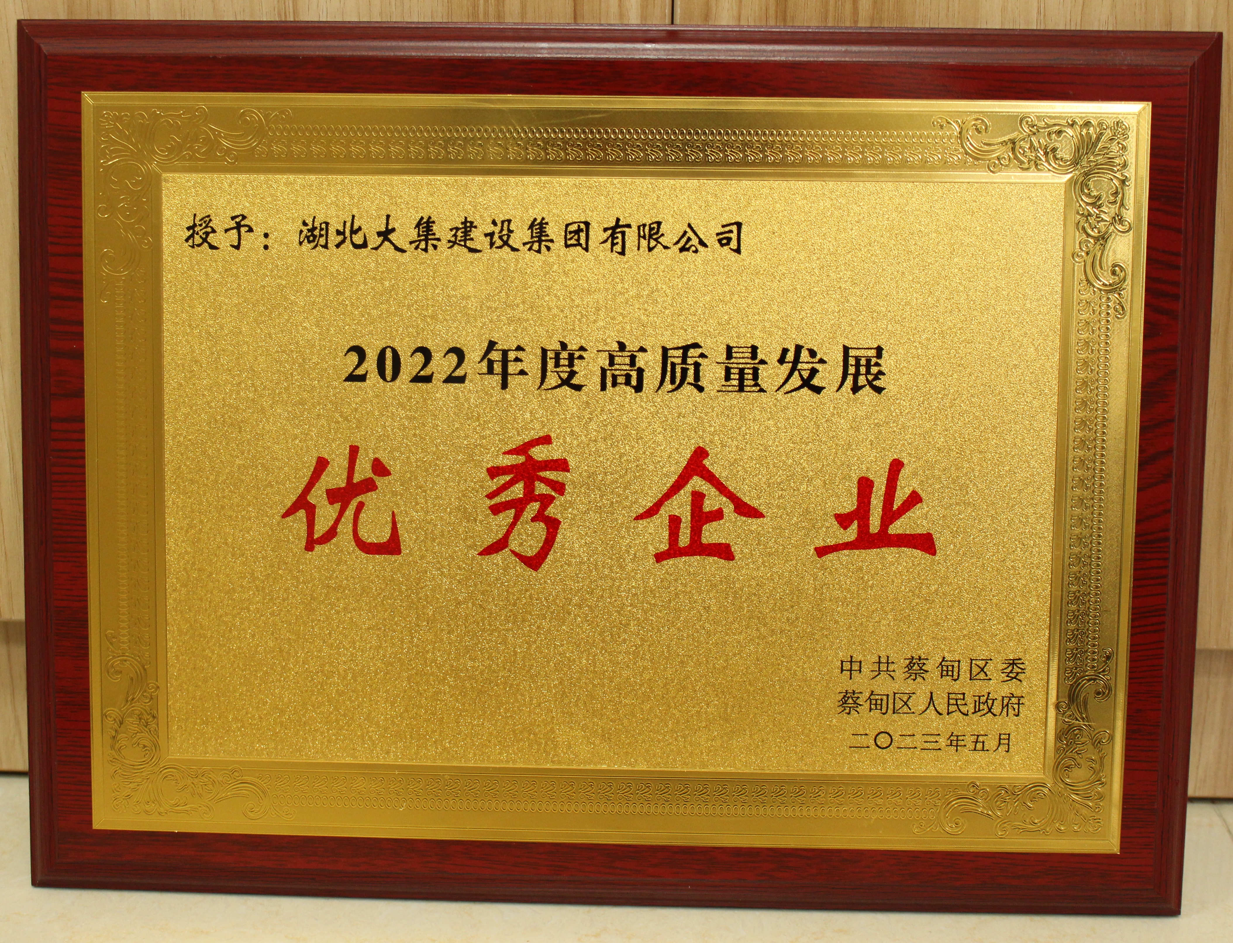 5月31日上午,中共蔡甸區(qū)委、蔡甸區(qū)人民政府組織召開(kāi)了“蔡甸區(qū)學(xué)習(xí)大灣區(qū)經(jīng)驗(yàn)推動(dòng)高質(zhì)量發(fā)展大會(huì)”。大會(huì)表?yè)P(yáng)了一批突出貢獻(xiàn)企業(yè)和優(yōu)秀企業(yè),湖北大集建設(shè)集團(tuán)有限公司榮獲“2022年度高質(zhì)量發(fā)展優(yōu)秀企業(yè)”榮譽(yù)稱(chēng)號(hào)。