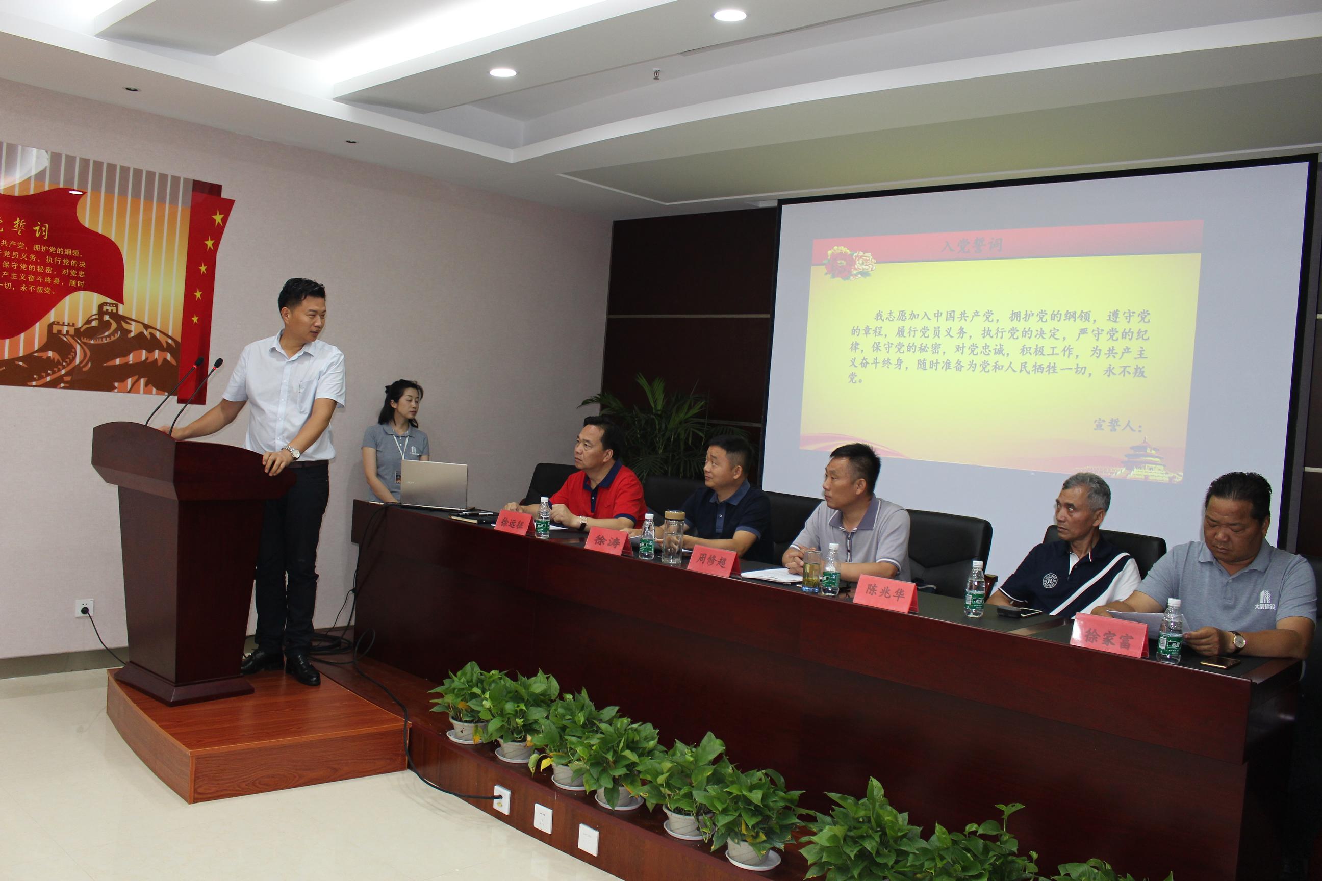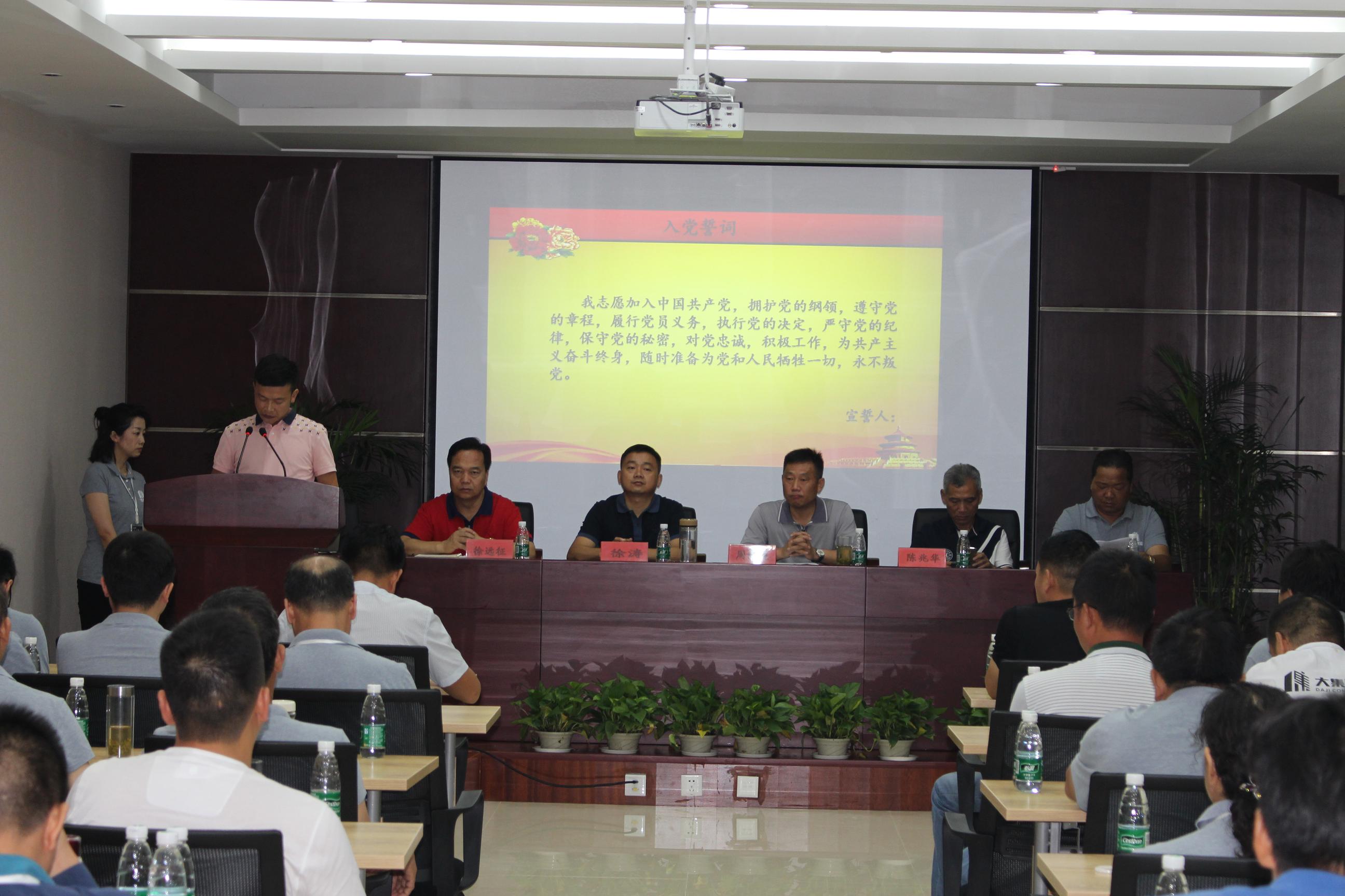 在慷慨激昂的大合唱《沒(méi)有共產(chǎn)黨就沒(méi)有新中國(guó)》中,會(huì)議拉開(kāi)了序幕,熱血沸騰的歌聲結(jié)束后,由集團(tuán)黨委副書(shū)記徐遠(yuǎn)征同志帶領(lǐng)新黨員做入黨宣誓,老黨員重溫入黨誓詞。