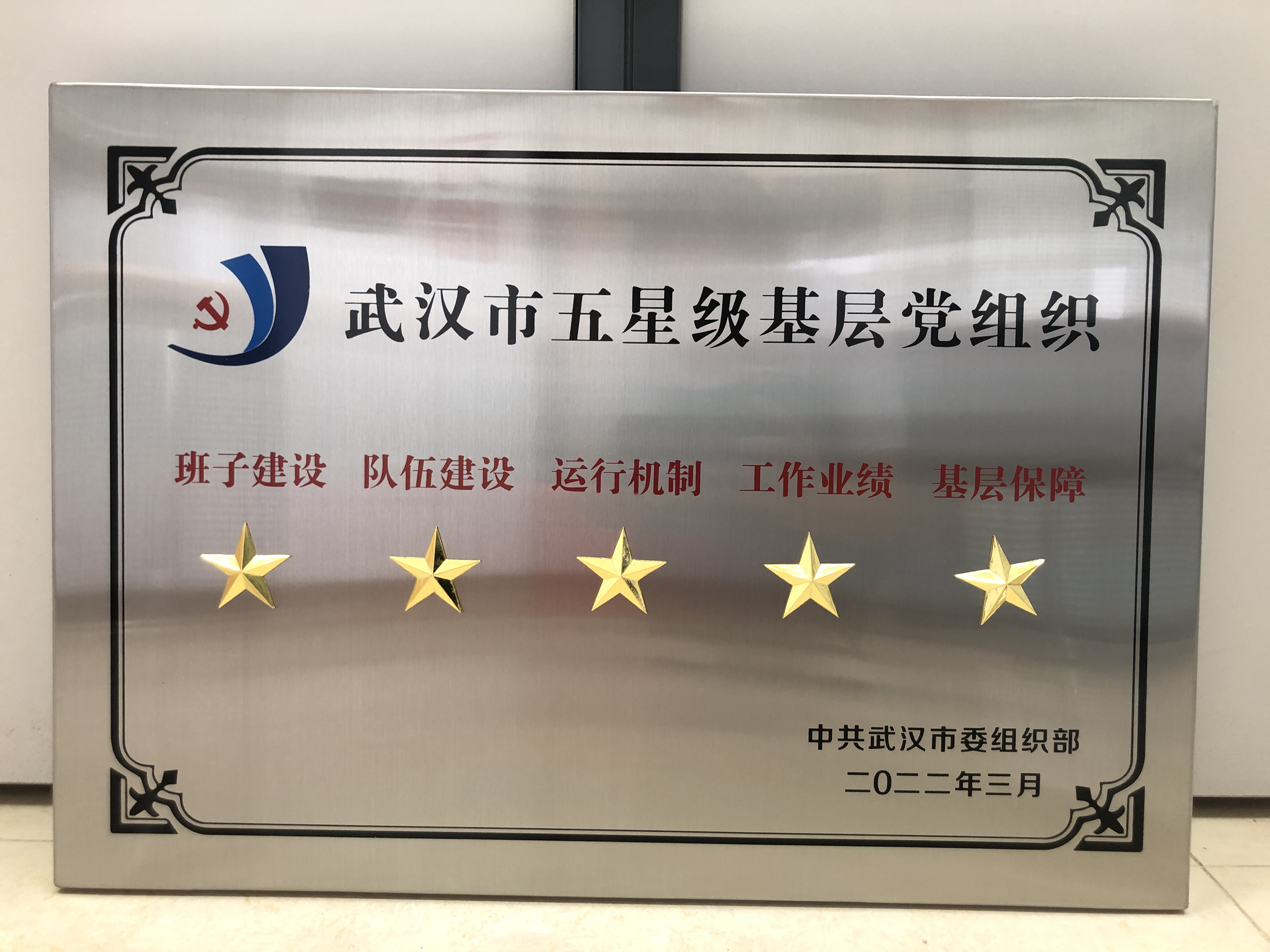 近日,中共湖北大集建設(shè)集團(tuán)有限公司支部委員會(huì)被中共武漢市委組織辦正式授予“武漢市五星級基層黨組織”榮譽(yù)稱號,這是武漢市基層黨組織“星級爭創(chuàng)”活動(dòng)中的最高榮譽(yù)。